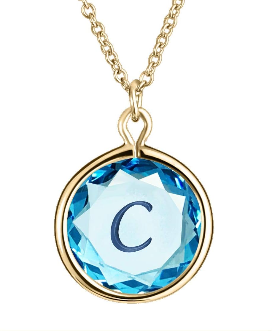 LovePendant/Necklaces Engraved and Enameled Swarovski Crystal Initial C Pendant/Necklace in Sterling Silver(Initial C neck in blue crystal & blue enamel in yellow-gold-plated-silver)