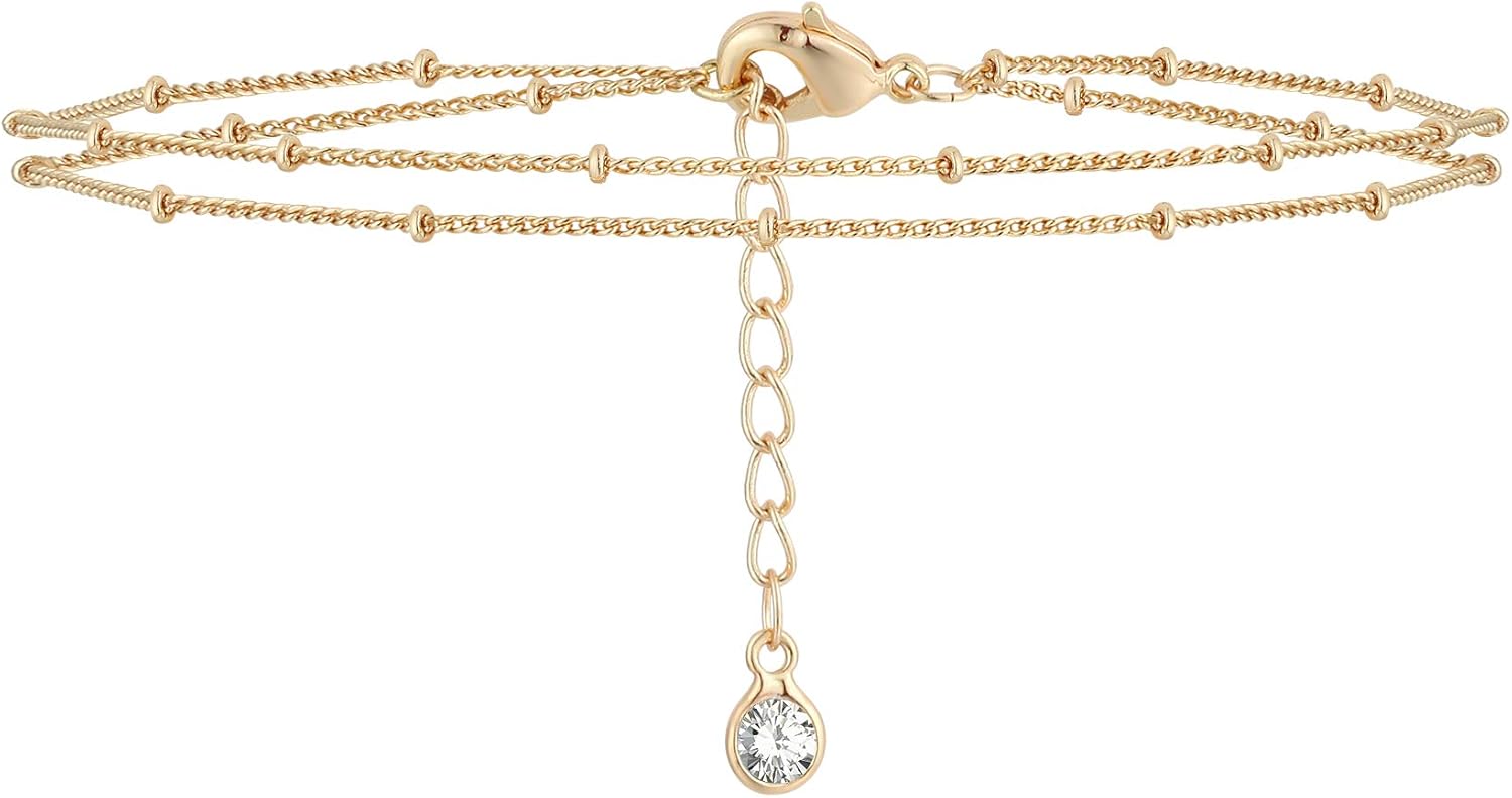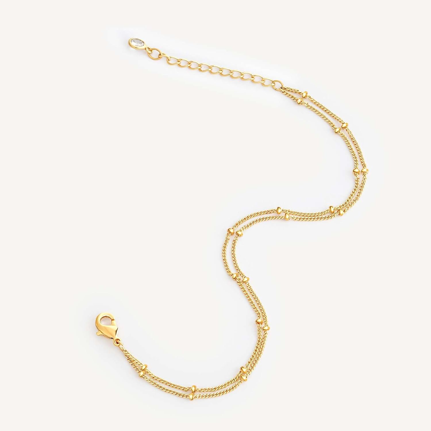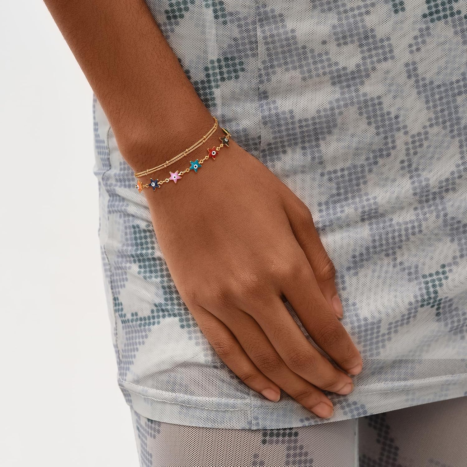 MEVECCO Bracelet for Women 14K Gold Plated Dainty Chain Simple Jewelry Cute Handmade Minimalist for Her(2 Layer Satellite Chain)