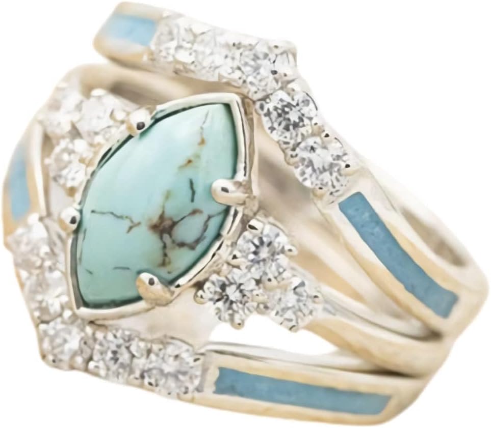 Rings Set: 3 in 1 turquoise ring that can be stacked or worn as a single or stacked ring. Natural turquoise zircon rhinestones are stylish and beautiful, and will make your fingers sparkle