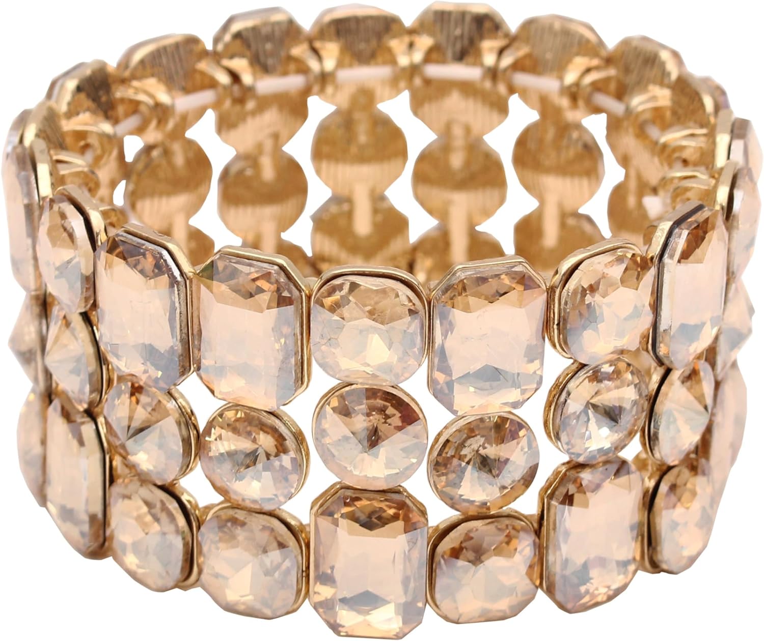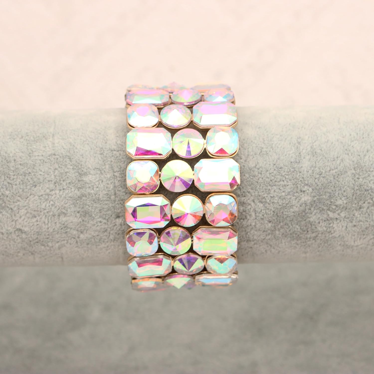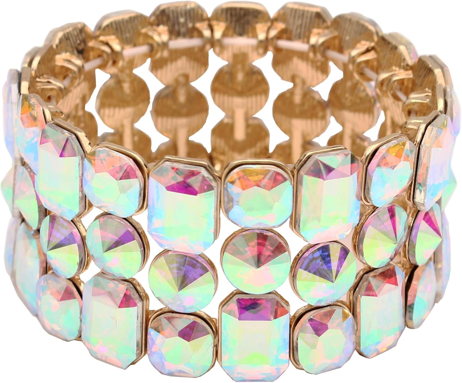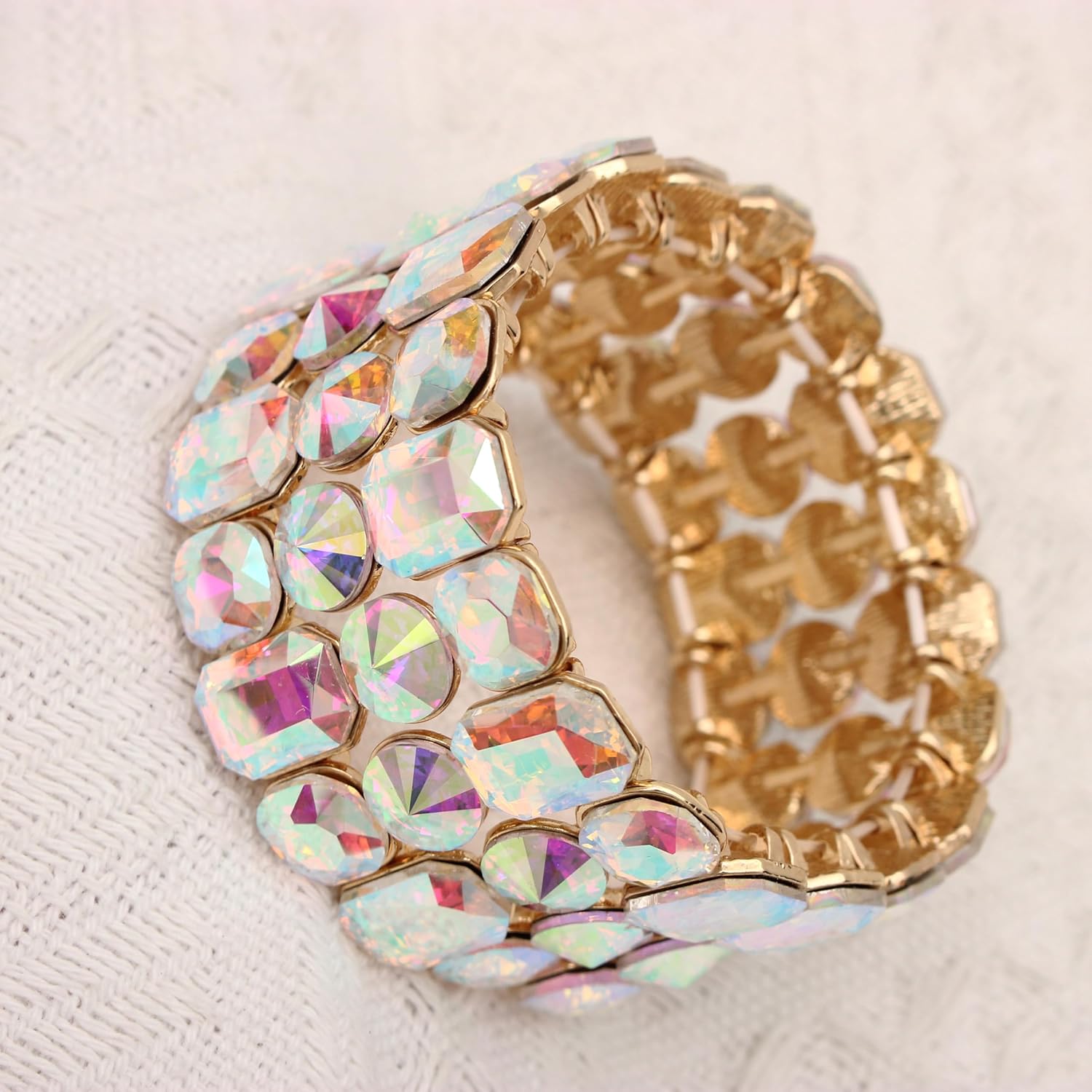 QLLYHLH Woman’s Stretch Bangle Bracelet Brides Bridesmaid Party Costume Austrian Crystal Elastich Bangle Bracelet For Wedding(AB Crystal-Gold Plated,alloy)