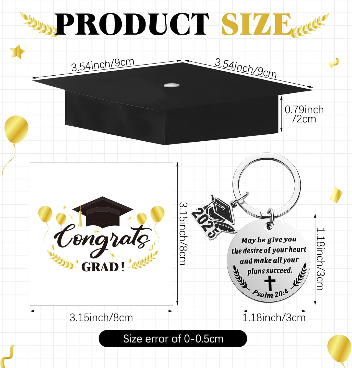 Unique Design: the graduation religious keychain has a small [2025] metal plate, and the gift box is designed in the shape of a doctor's hat with tassels, representing the class of 2025; The exquisite combination is ideal for graduation Christian keychain gift