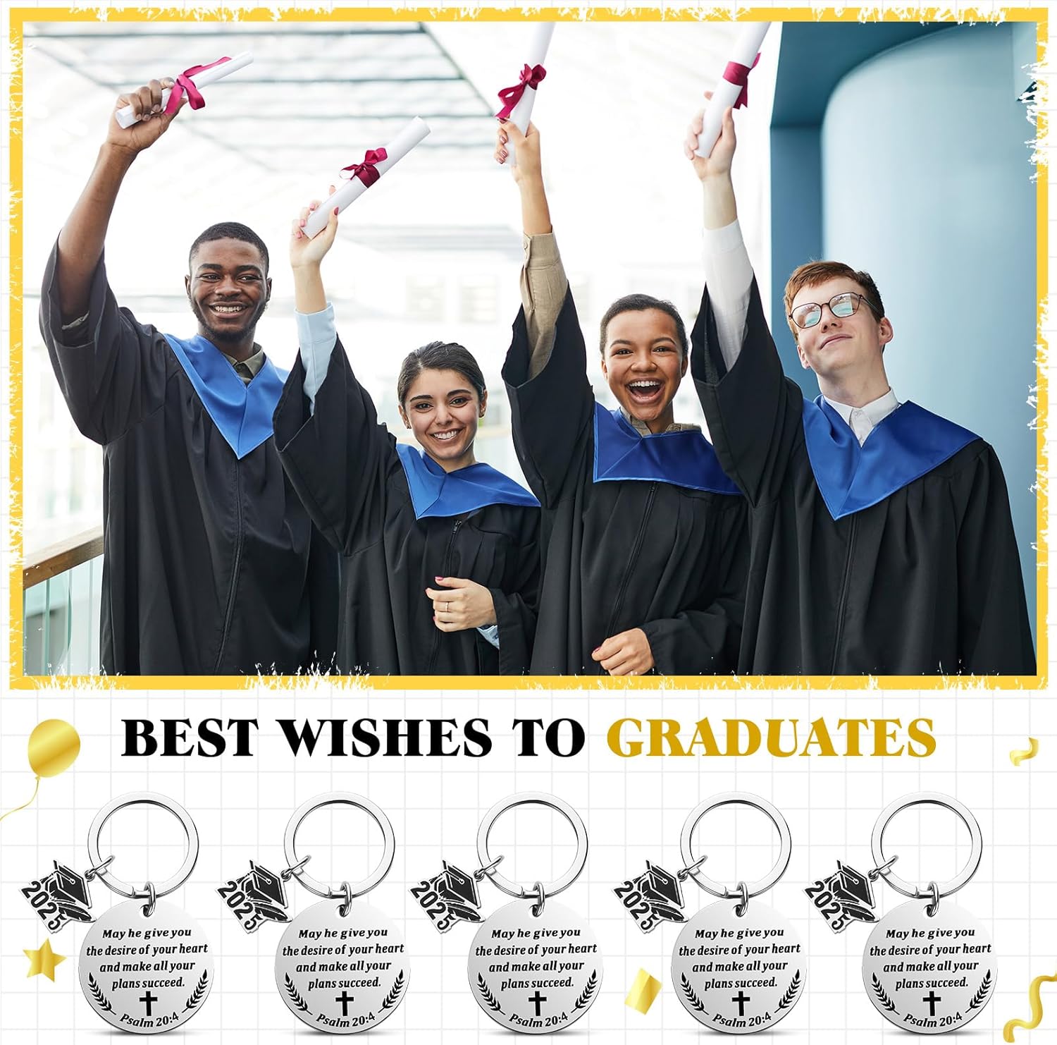 Comment on "Quelay 12 Sets Graduation Bible Verse Keychain Gift Inspirational Religious Christian Keyring with Box for Class of 2025 Grad(Round)"
