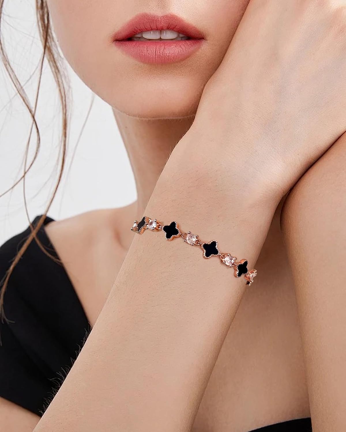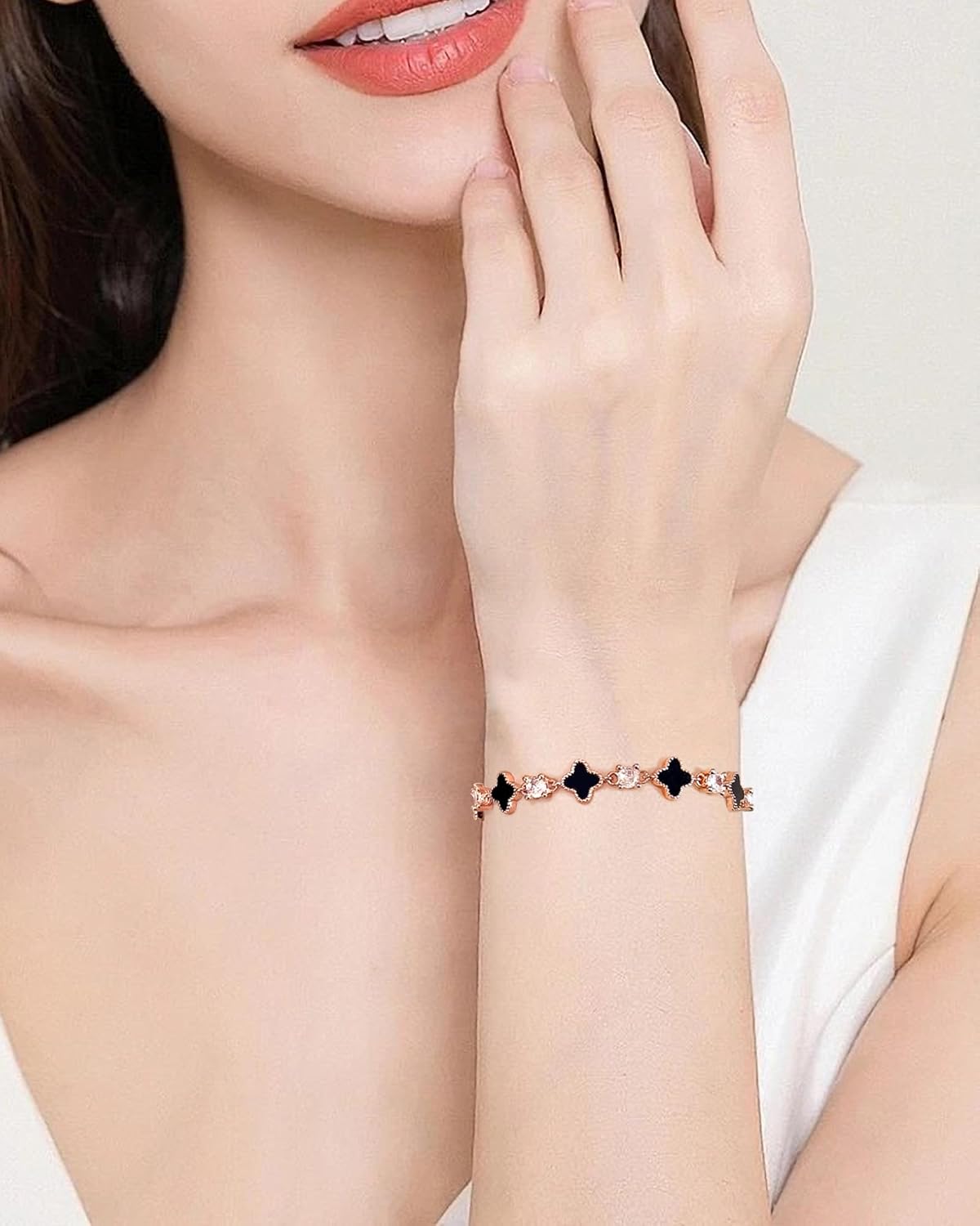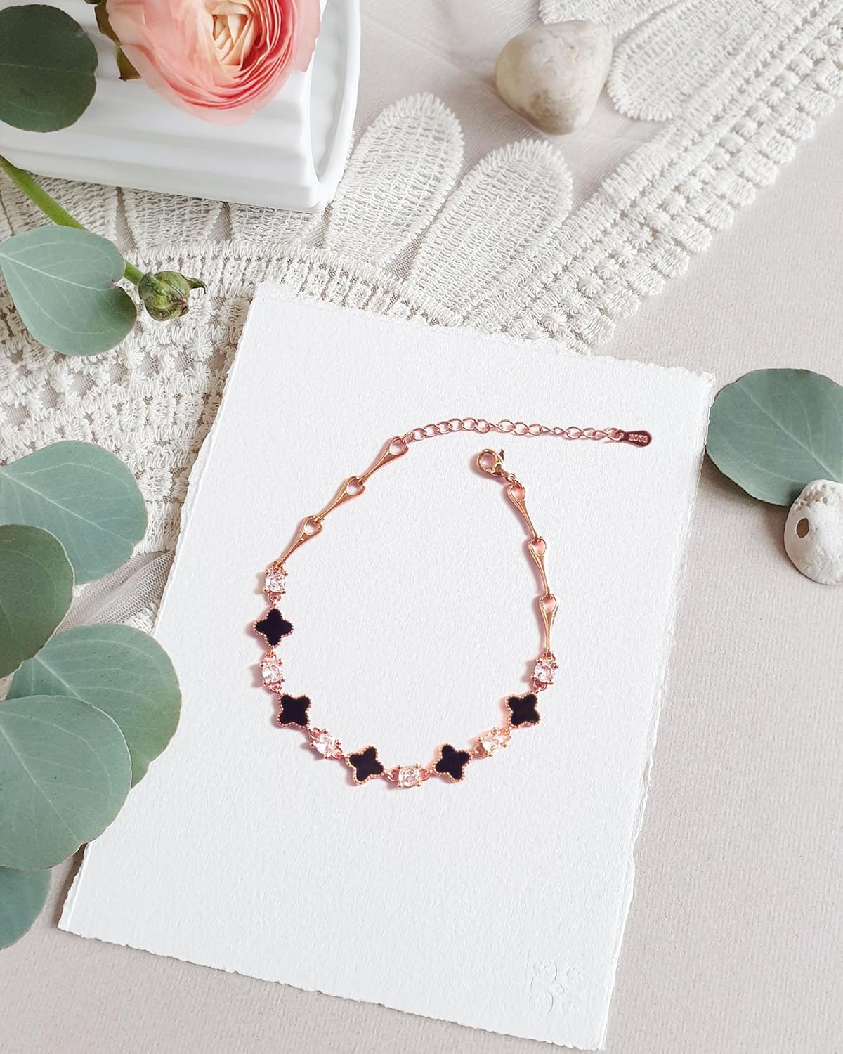 Comment on "S925 Silver 14K Rose Gold plated Clover Lucky Bracelet for Women Green/Black/White/Red Flower Four Leaf Link Bracelets Trendy Jewelry Gifts for Women(Black-17.5cm+5cm)"