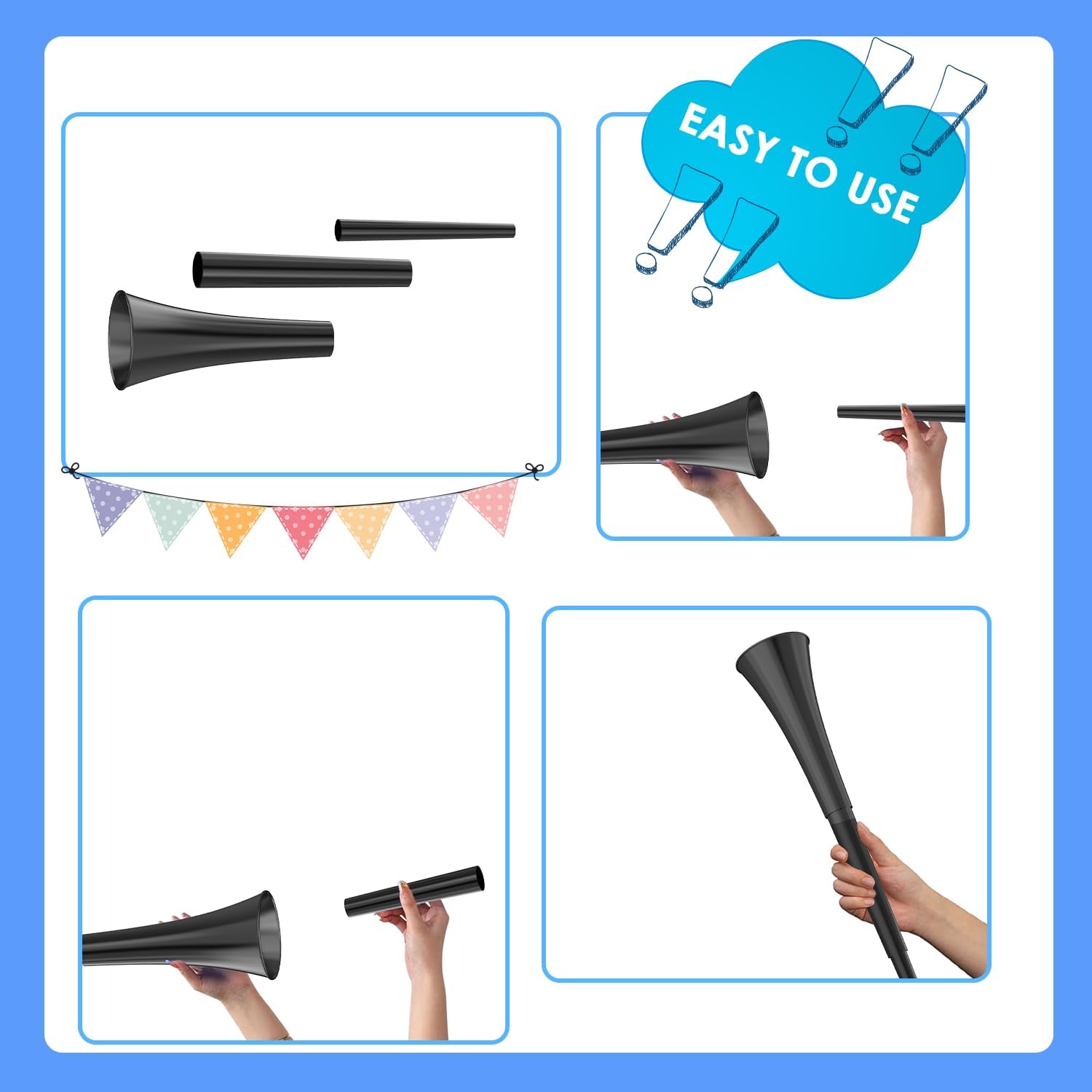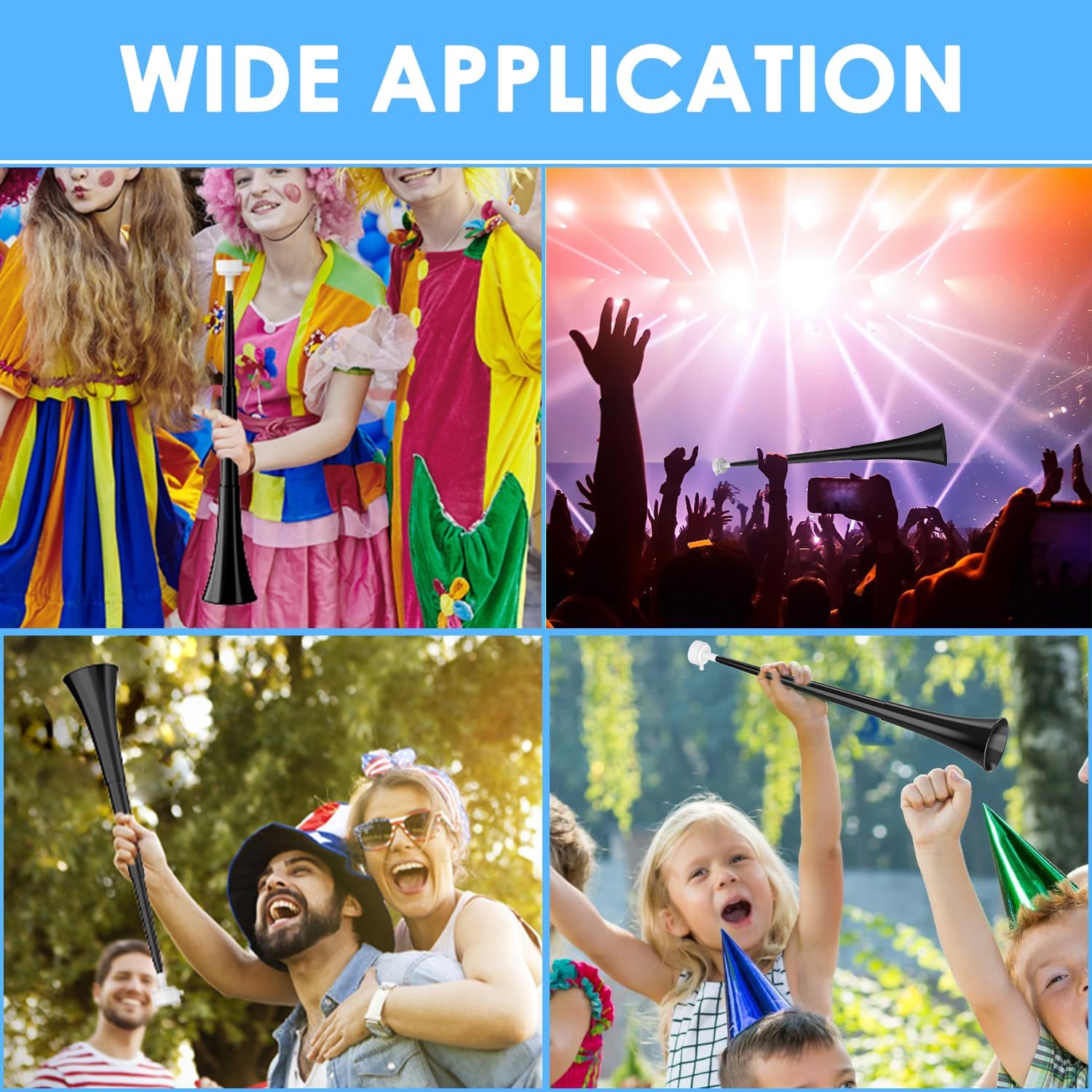 Noise Maker Blow Horn: Unleash Your Team Spirit! Get ready to elevate your game-day experience with our 24” Stadium Horn! Unlike ordinary noisemakers, this striking horn will ensure everyone knows you’re a dedicated fan. Its collapsible design allows you to easily adjust the length, making it super convenient to carry. Perfect for soccer matches, American football games, the World Cup, and baseball season—show your support loud and proud!