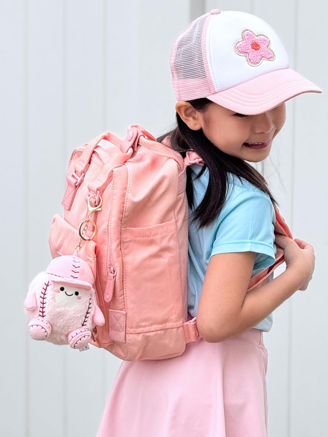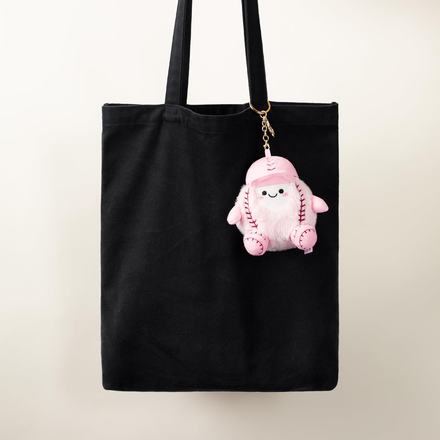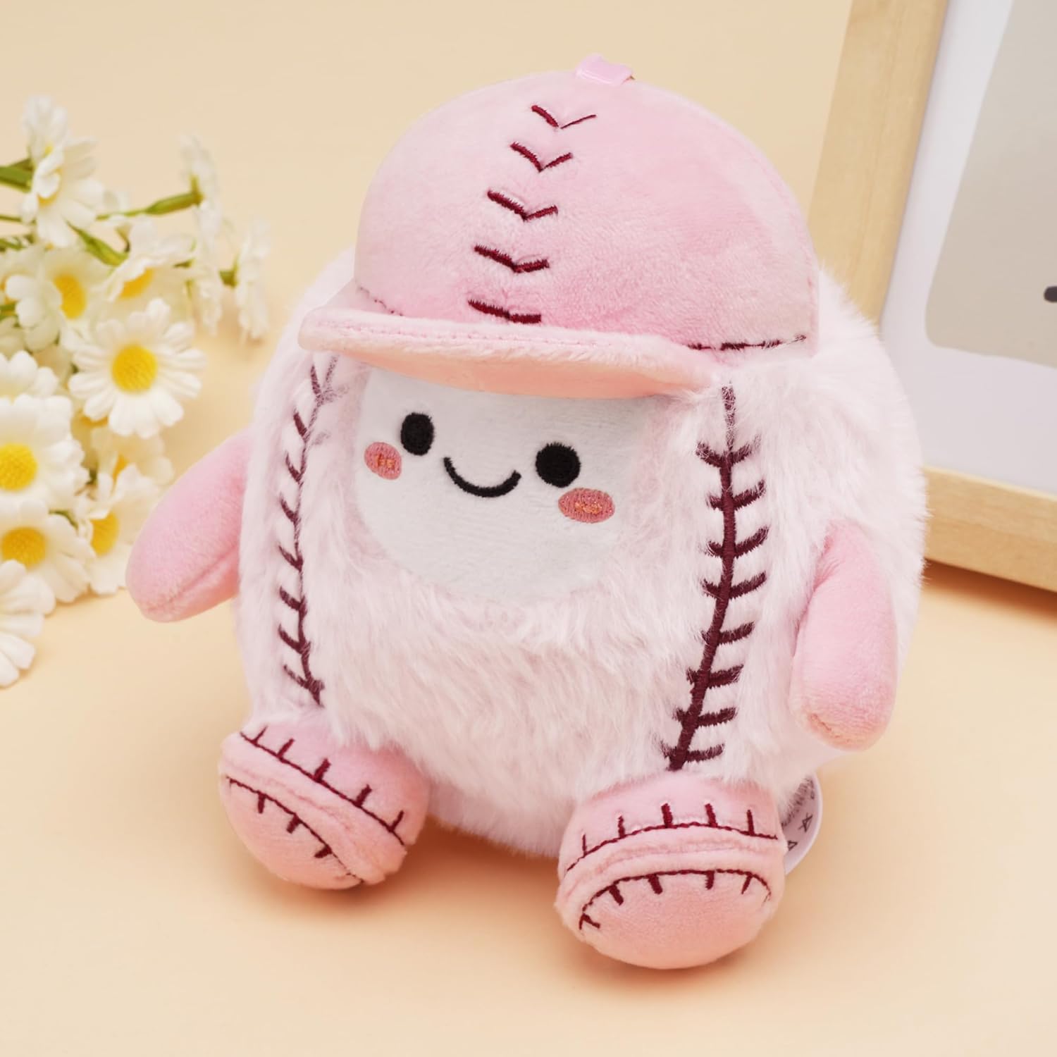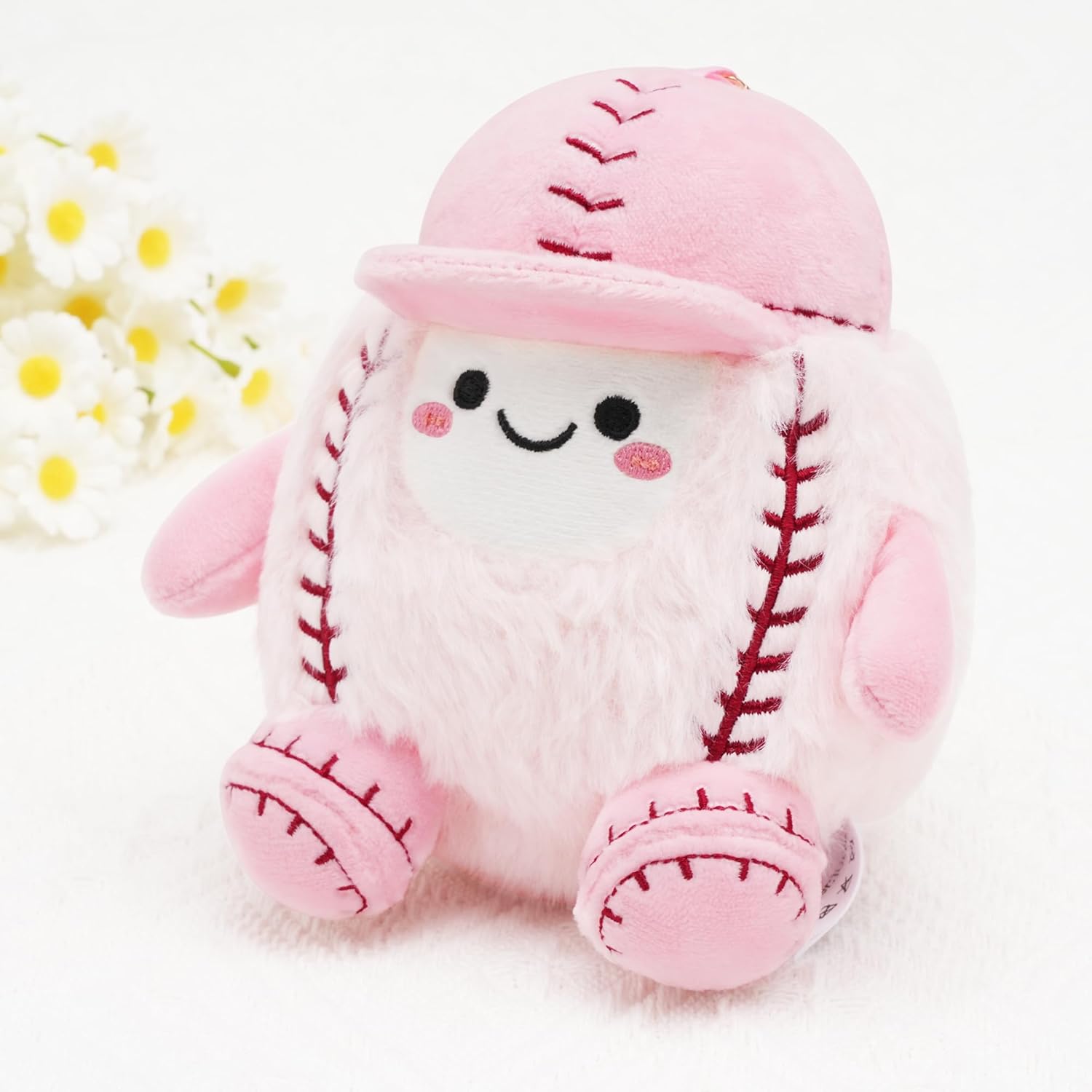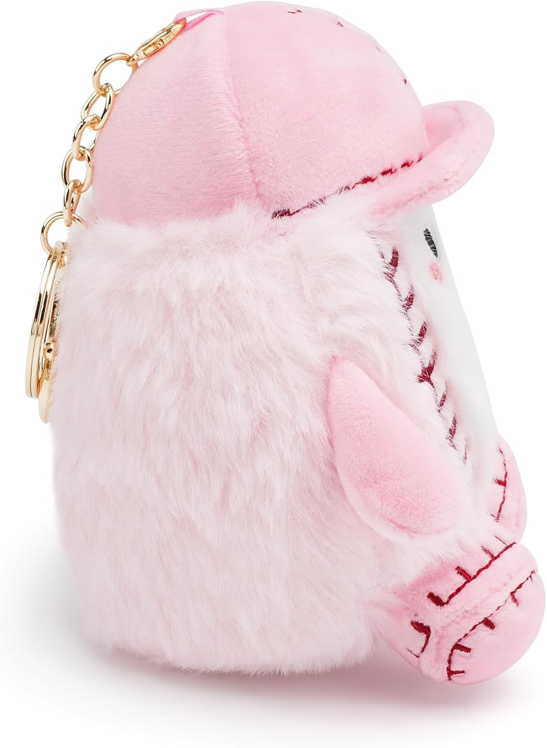 Fuzzy Pink Fabric: Add a touch of whimsy to any bag or backpack with this adorable softball charm! Crafted with fuzzy pink polyester and stuffed for the perfect amount of squish, this cute baseball keychain is just as fun to squeeze as it is to look at