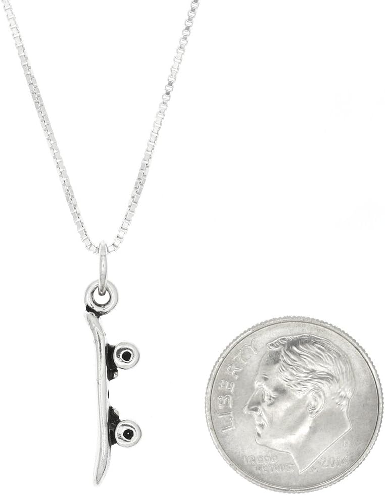 Sterling Silver Oxidized 3D Large Skateboarding Skateboard Charm Necklace(16.0 Inches)