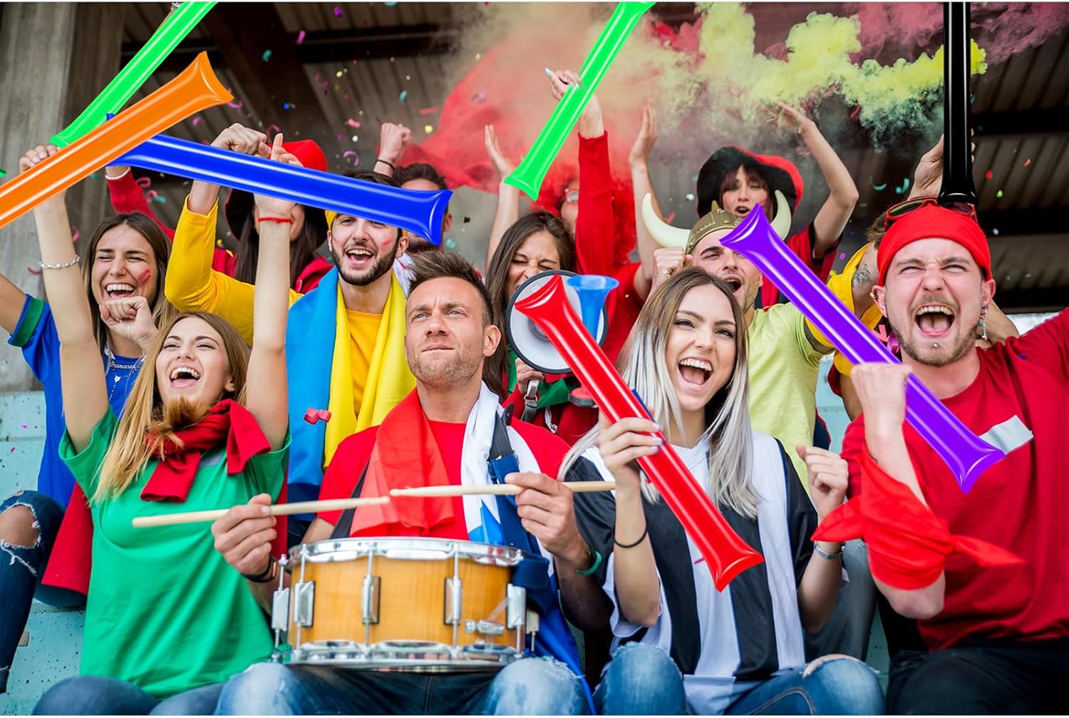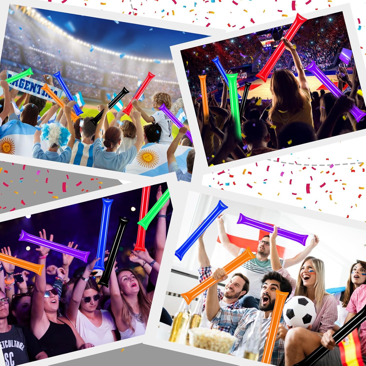 Cheer Up the Atmosphere: High-quality thick cheering sticks to cheer on sports teams. The inflatable spirit sticks noise makers emit a loud sound when they hit each other, which is great for cheering on your favorite team and players while watching a sporting event, and gives you more momentum to show your team spirit.