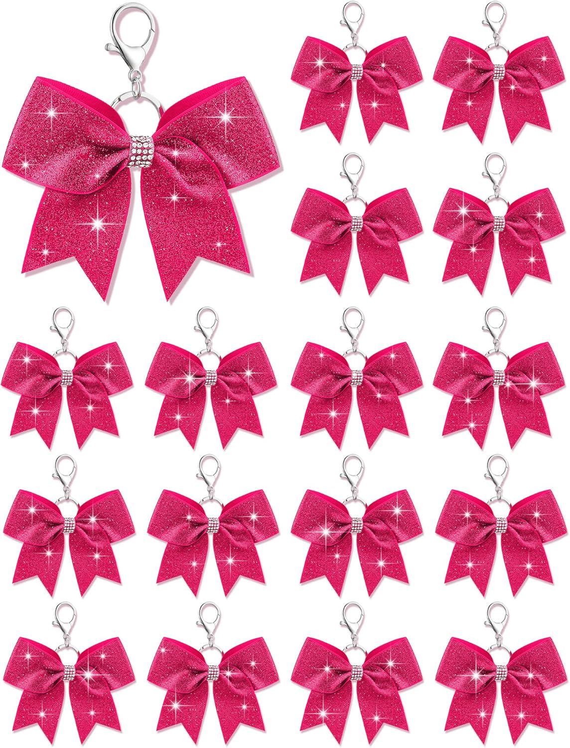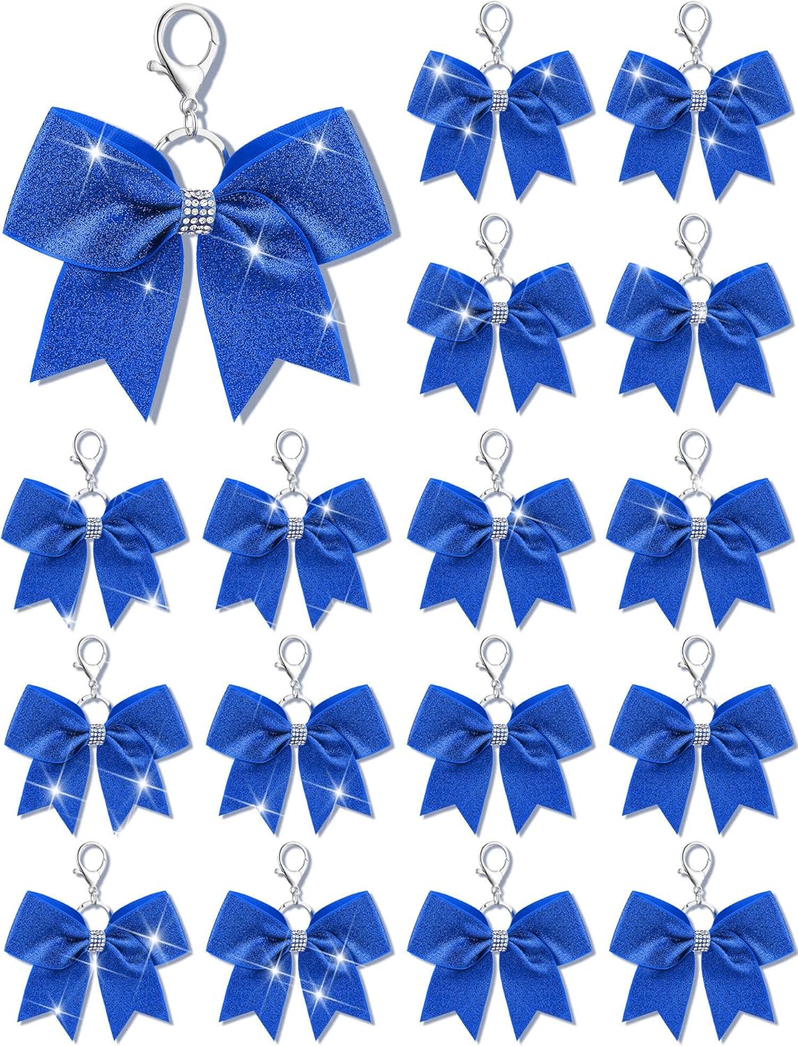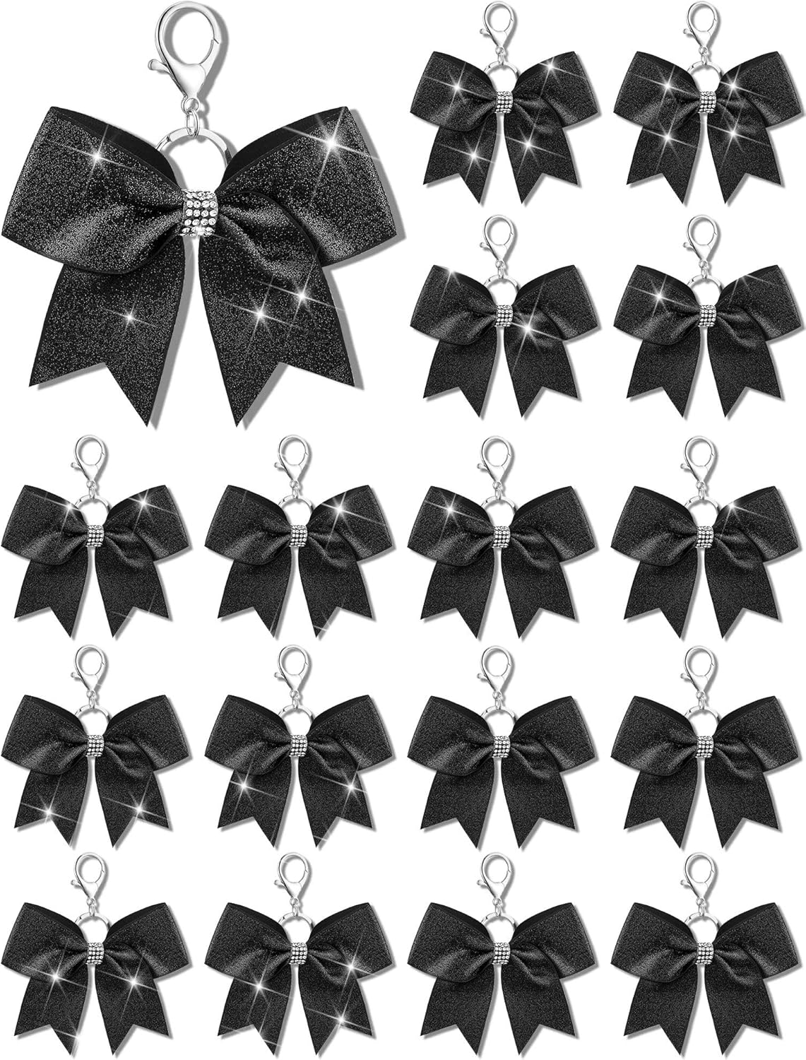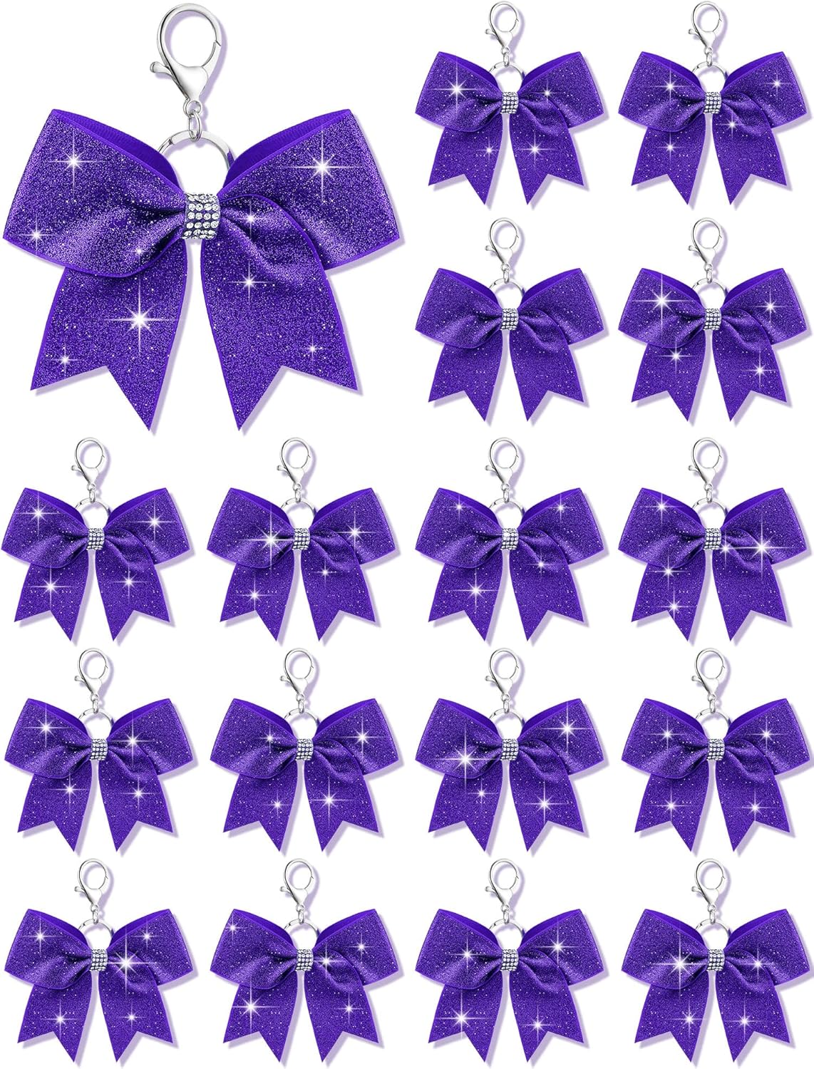 What You Will Get: each package includes 16 pieces of cheer bow keychains, nice for quantity users and suited for various occasions; These cheerleader bow keychains are embellished with a glittery finish, making them decorative charms, and the adequate quantity will meet your various needs
