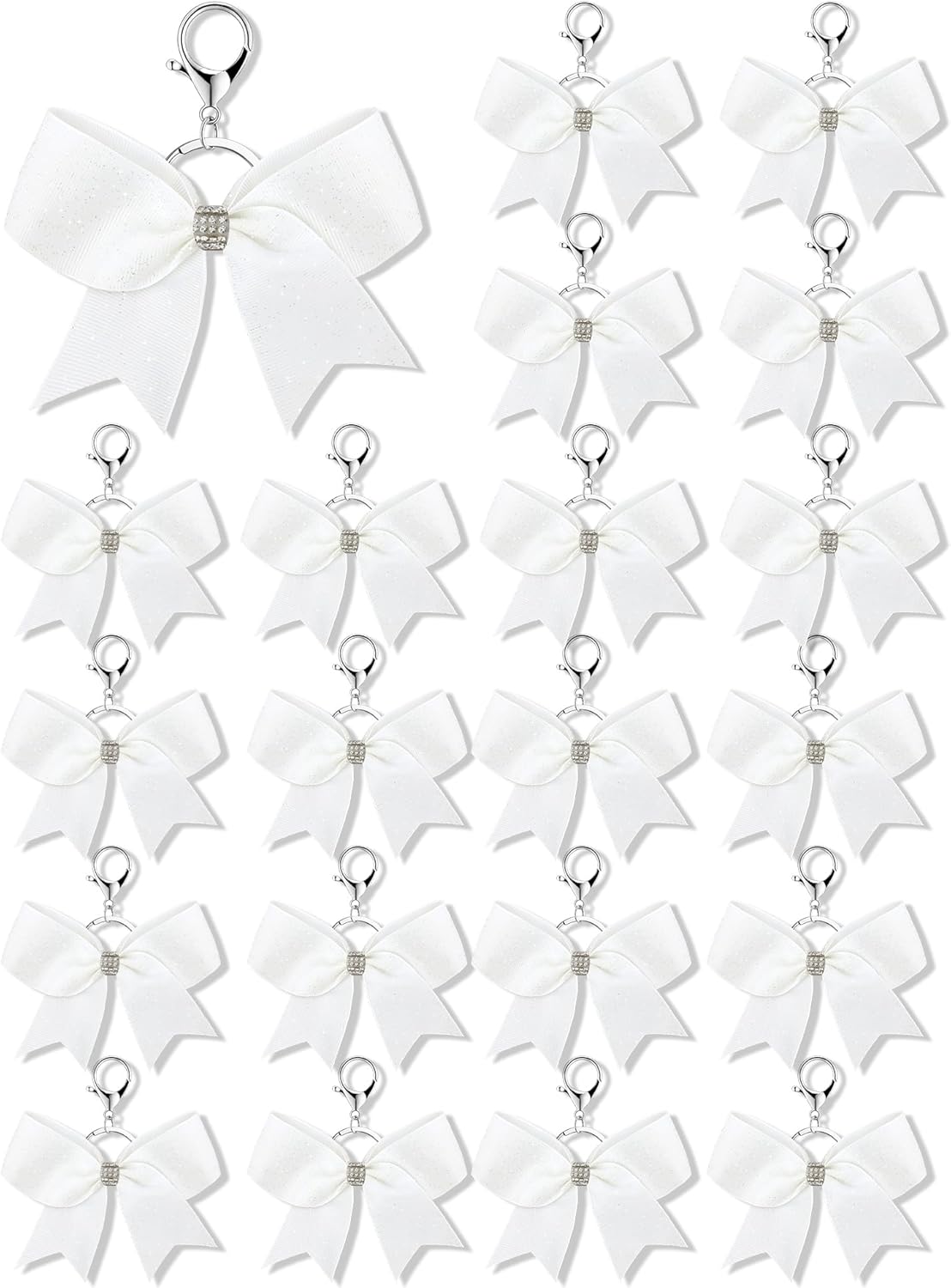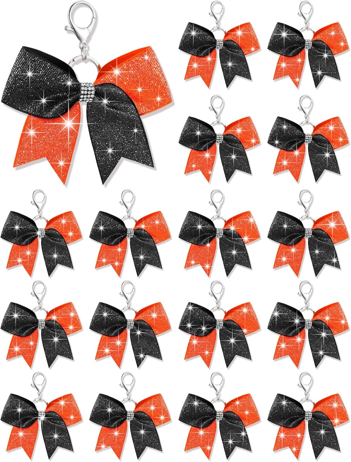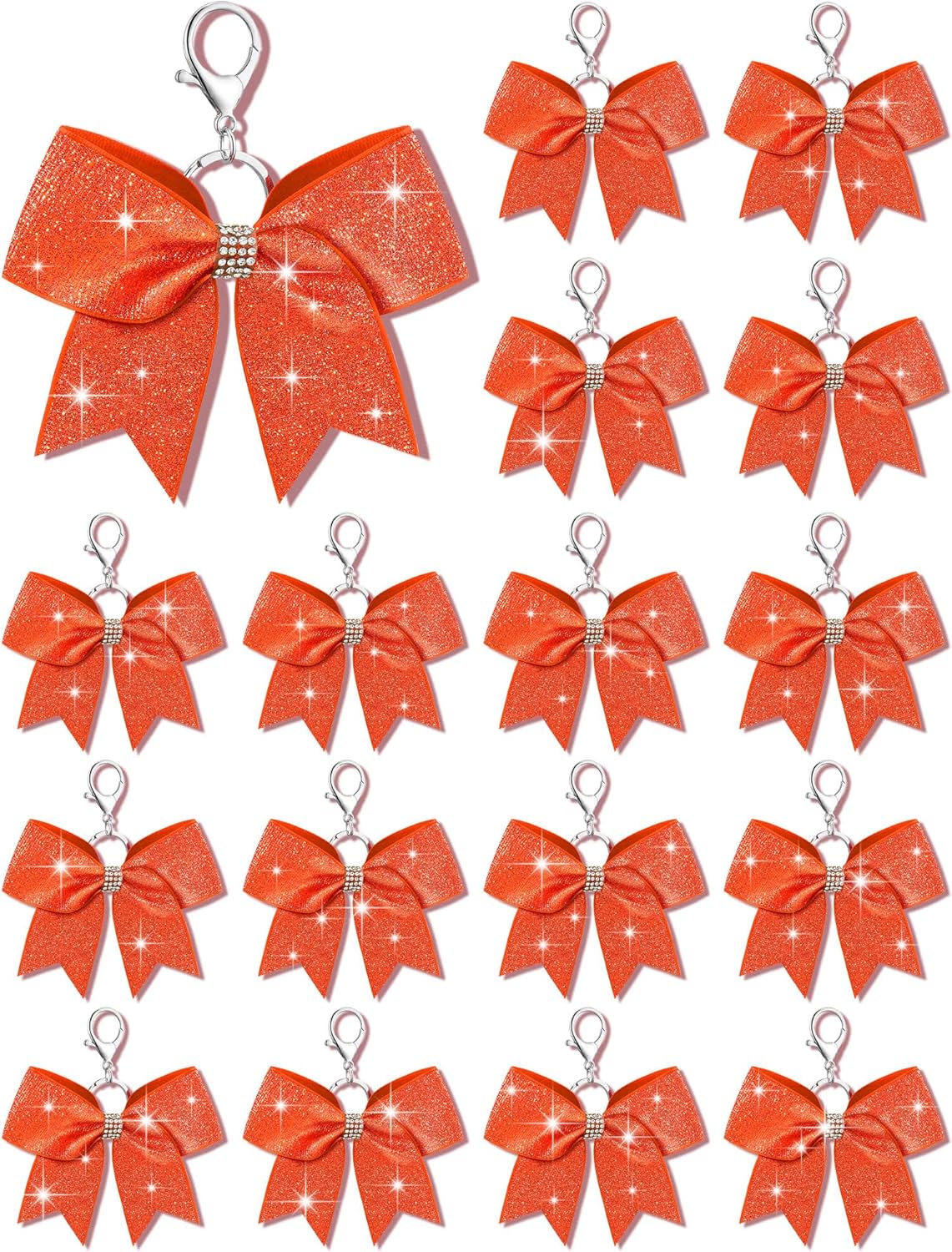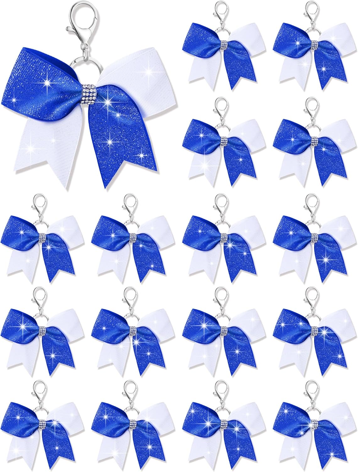 What You Will Get: each package includes 16 pieces of cheer bow keychains, nice for quantity users and suited for various occasions; These cheerleader bow keychains are embellished with a glittery finish, making them decorative charms, and the adequate quantity will meet your various needs