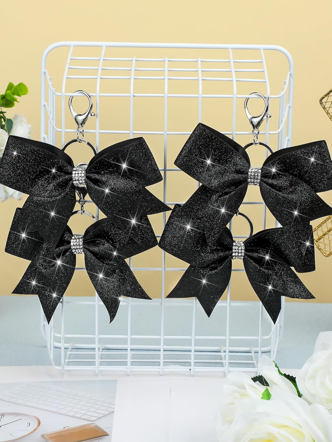 Ideal for Various Occasions: whether you want to add some point to a daily item or need party favors for an event, our rhinestone cheer bow keychains are a nice solution; They're not only beautiful, but also practical and multi functional, nice for cheer camp, team, practice, performance, or daily use