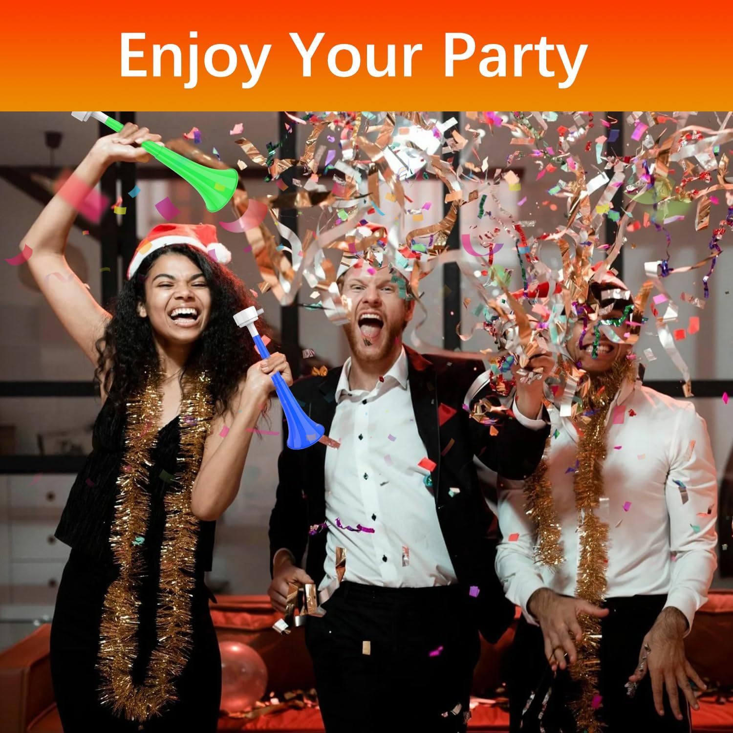 PREMIUM MATERIAL: This stadium horn is crafted from high-quality plastic, making it sturdy and long-lasting. It's designed to resist breaking or bursting, ensuring durability. The edges are smoothly sanded and polished, so there are no sharp burrs to worry about, making it safe for use. Enjoy the fun and appealing sounds it produces, perfect for grabbing attention at parties!