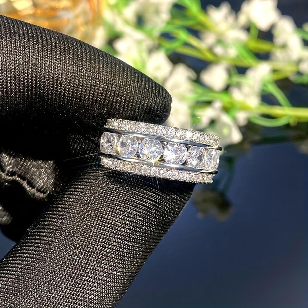White Golden Plated Copper with Cubic Zirconia Wide Band Statement Ring Personalized Accessory Ideal for Women's Daily Casual Wear Party Holiday Anniversary Love Jewelry Gift(7)
