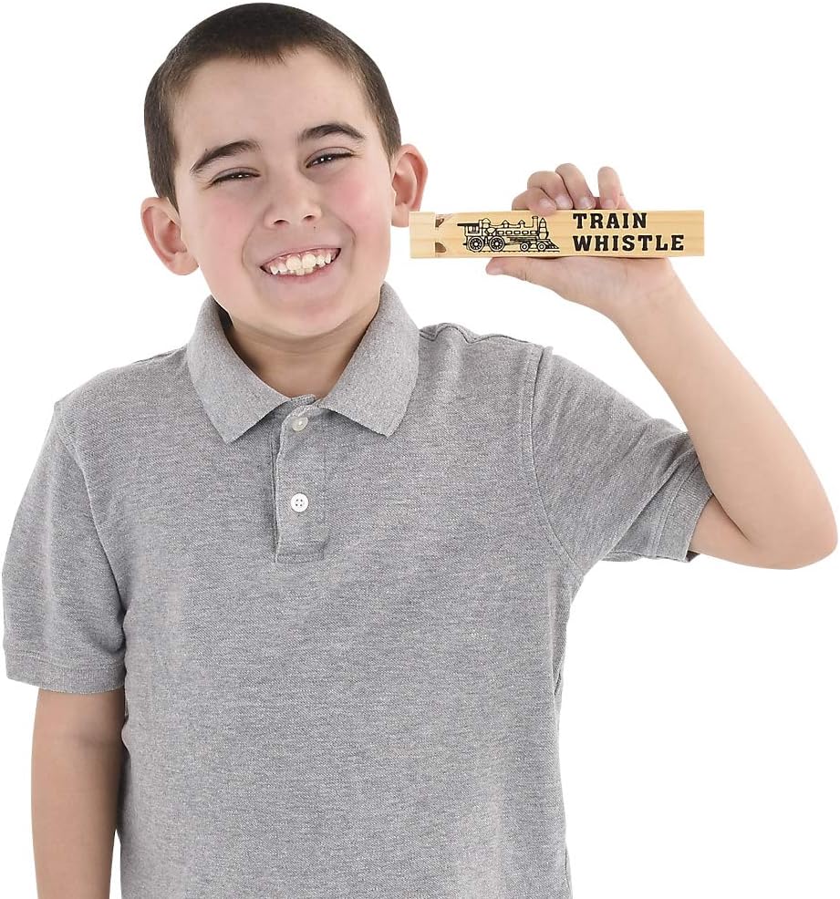 PACK OF 12 - 5.75 INCH WOODEN TRAIN WHISTLE: Each order includes 12 Natural Wooden Train Whistles that make kids feel like real conductors. Watch the smiles on your boys and girls faces as they have fun making exciting train sounds with these Wood Train Whistles